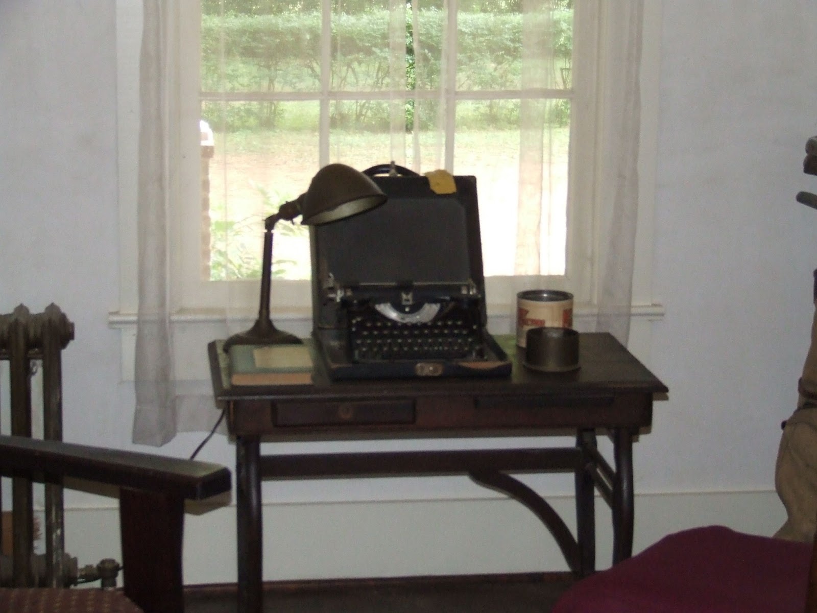 I took the pic. I still haven't figured out where he plugged his LED flatscreen monitor in, or what version of Word that old Underwood runs. I was glad to see Faulkner, like all burly he-men, eschewed use of the Mac.